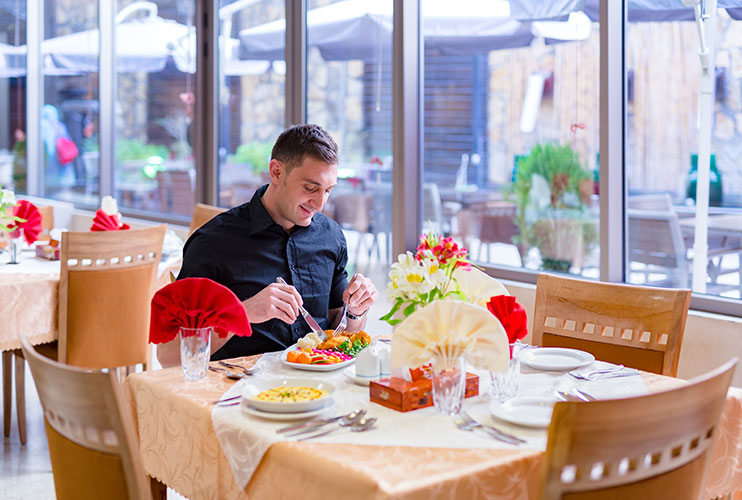 رستوران روباز و سرپوشیده ما، با فضایی آرام و دلپذیر، آماده پذیرایی از میهمانان گرامی و مسافران عزیز در تمام ایام سال است.